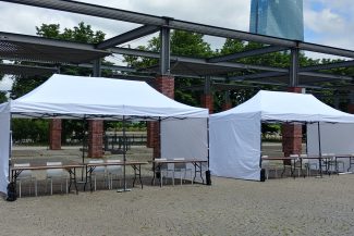 Eventausstattung mit Pavillions für verschiedene Infostände sowie Aufbau der elektrischen Infrastruktur