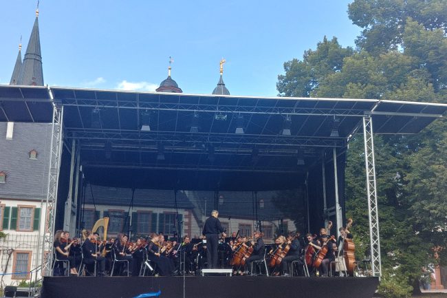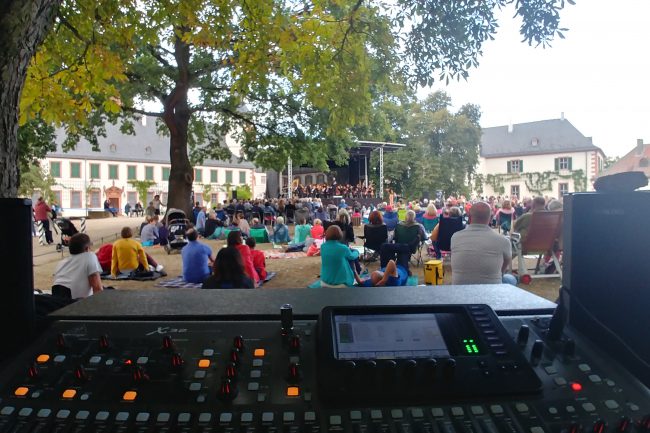 Aufbau einer Bühne mit Beleuchtungs- und Beschallungstechnik inkl. Abnahme und Verstärkung des Orchesters